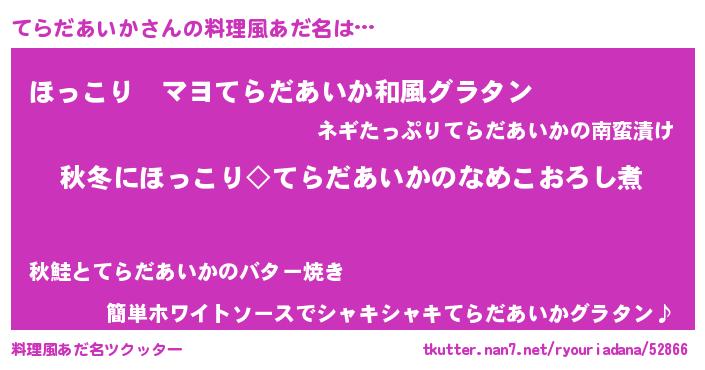 | 意味不明あだ名 | 『住所不定無職てらだあいか(6歳)』 |