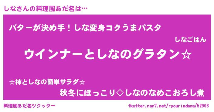 | 意味不明あだ名 | 『しなフォーエバー』『ニラ科しな属』 |