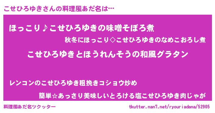 | ヘコむあだ名 | 『こせもー』『こせひろゆき(笑)』 |