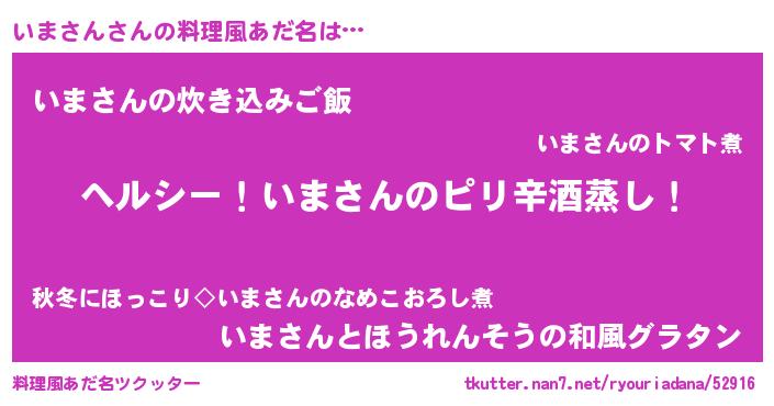 | 胡散臭い通販商品みたいなあだ名 | 『芸能人もオススメする高麗人参…その名も「いまさん」』 |