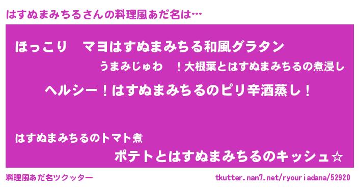 | 男性向けラノベタイトル風あだ名 | 『Re:はすぬまみちるから始める異世界生活』 |