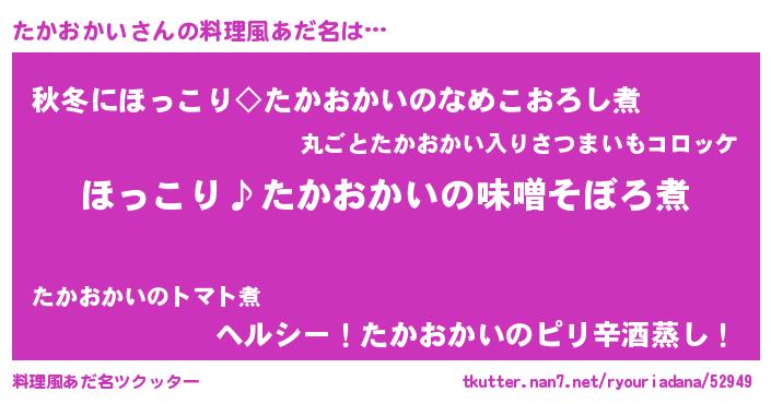 | ヘコむあだ名 | 『たかにゅー』『酢こんぶ』 |