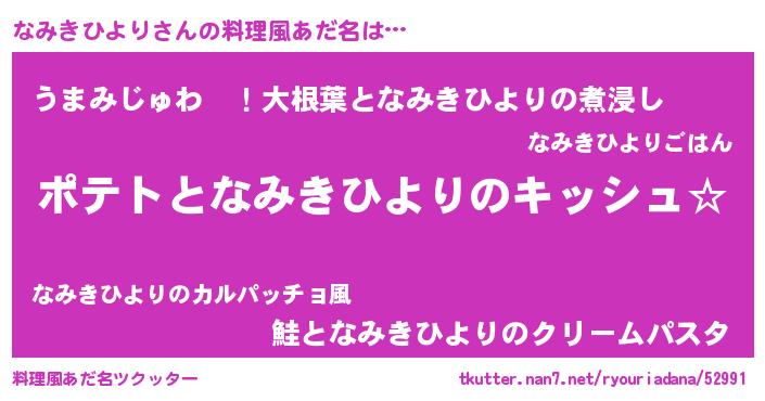| ポケモン風あだ名 | 『ヒナミキヒヨリ』『ナミキダネ』 |