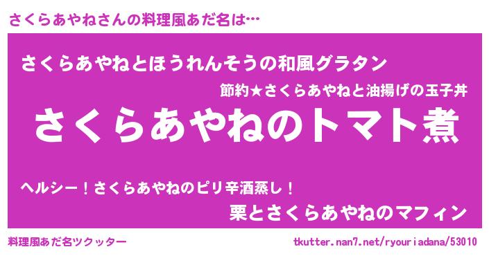 | ヘコむあだ名 | 『さくにー』『さくらあやね(笑)』 |