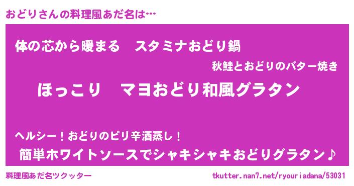 | 胡散臭い通販商品みたいなあだ名 | 『あなたにだけ特別に提供する世界で10本だけ現存している希少なブランデー…その名も「おどり」』 |