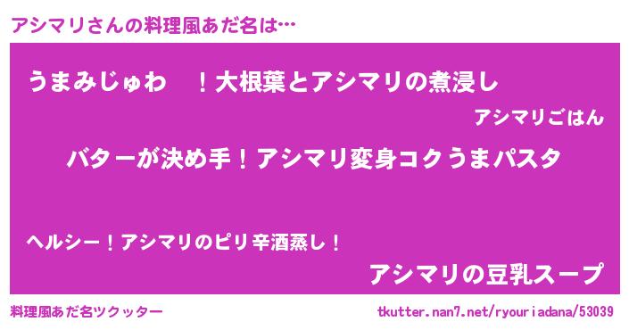 | 女子向けラノベタイトル風あだ名 | 『アシマリ恋絵巻』『アシマリの婚約者』 |