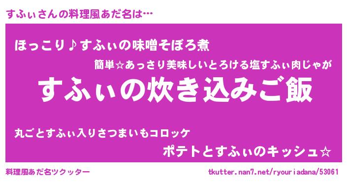 | ヘコむあだ名 | 『すふもー』『すふ太郎』『酢こんぶ』 |