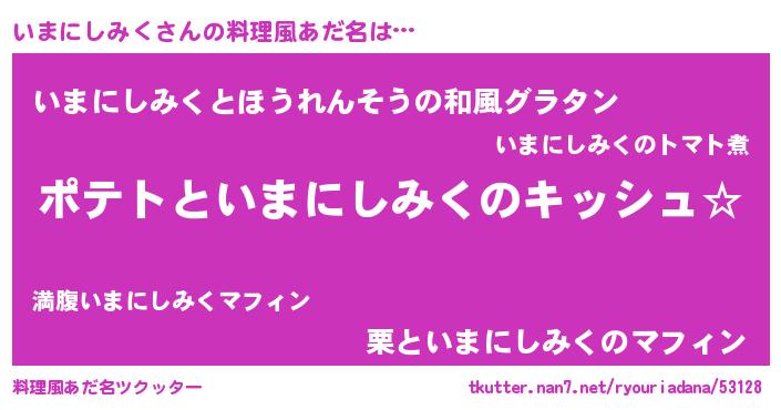 | ヘコむあだ名 | 『いまぷりん』『いまにしみく(笑)』 |