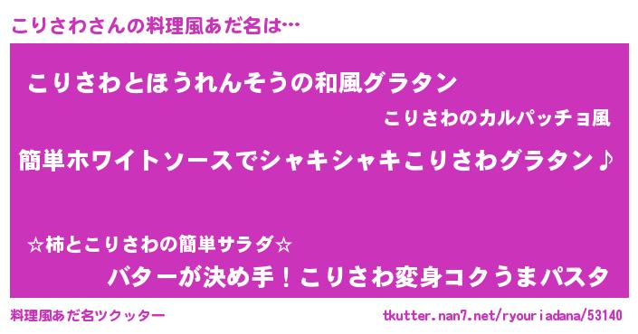 | 女子向けラノベタイトル風あだ名 | 『こりさわ様がみてる』『こりさわ恋絵巻』 |