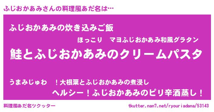| 肩書あだ名 | 『ふじおかあみ教授』『ふじおかあみ船長』 |