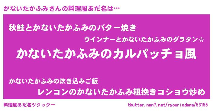 | 意味不明あだ名 | 『住所不定無職かないたかふみ(53歳)』 |