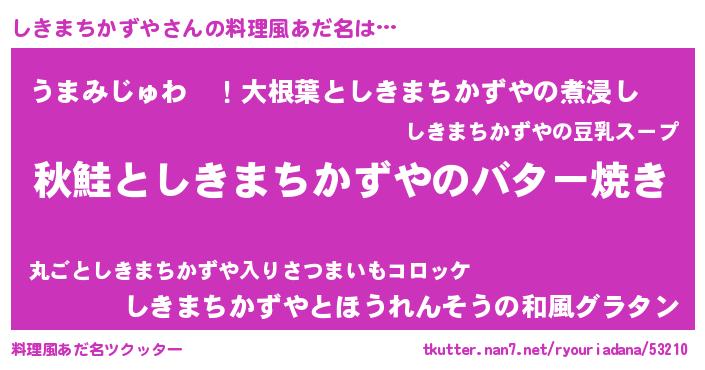 | ヘコむあだ名 | 『しきまちかずや(苦笑)』『レバニラ』 |
