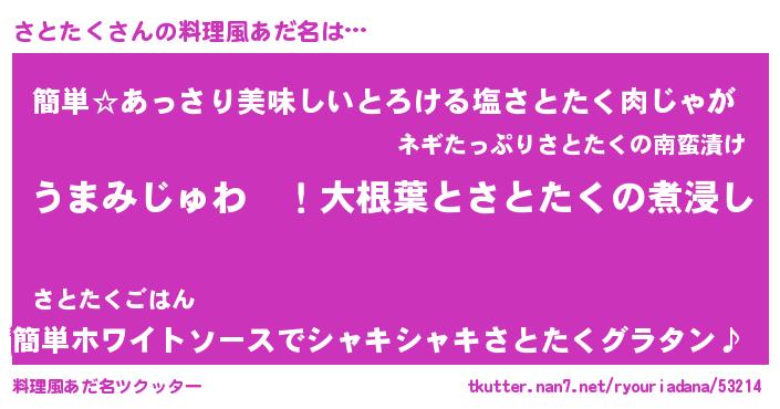 | ヘコむあだ名 | 『酢こんぶ』『さとたく(遠い目)』 |