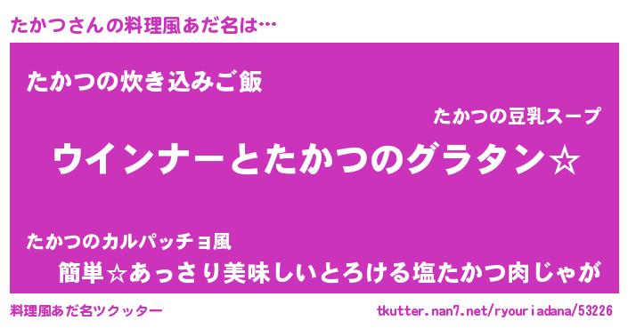 | ヘコむあだ名 | 『なまこ酢』『たかつ(小並感)』 |