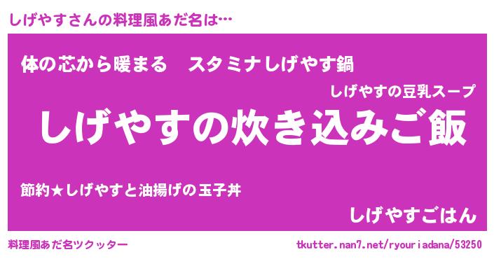 | 意味不明あだ名 | 『しげやすフォーエバー』 |