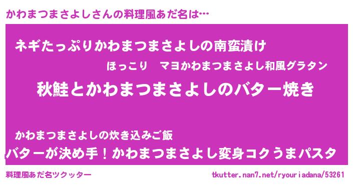 | 欧米人風あだ名 | 『ダルビッシュかわまつまさよし』 |