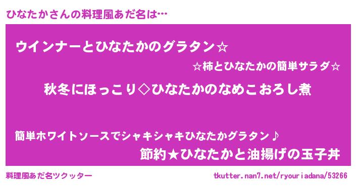 | 意味不明あだ名 | 『ひなたかフォーエバー』『自称ひなたか』 |