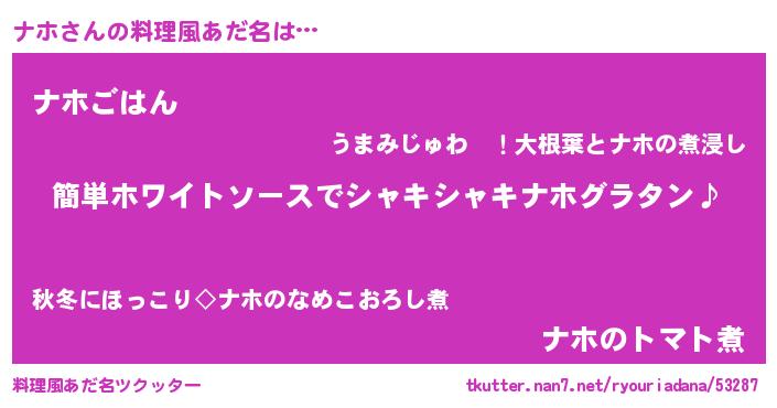 | 女子向けラノベタイトル風あだ名 | 『ナホ様がみてる』『ナホ夫妻のなれそめ』 |