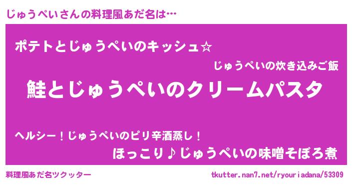 | 女子向けラノベタイトル風あだ名 | 『死神じゅうぺいの再婚』 |
