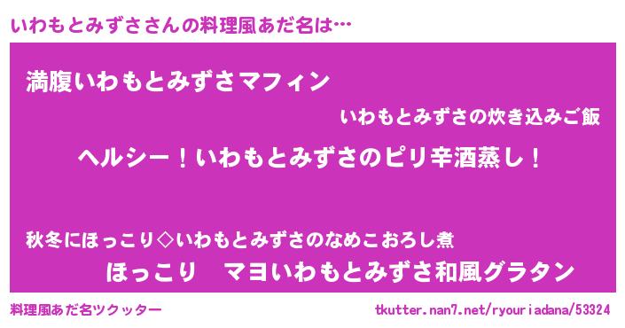| 男性向けラノベタイトル風あだ名 | 『Re:いわもとみずさから始める異世界生活』 |