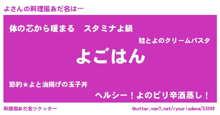 | ピコ太郎風あだ名 | 『ピヨ八郎』『ヨヨ太郎』『ヨコ史郎』 |
