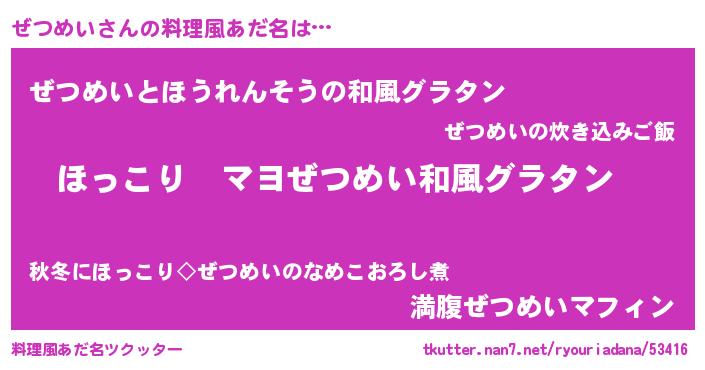 | ヘコむあだ名 | 『ぜつめい(震え声)』『なまこ酢』 |