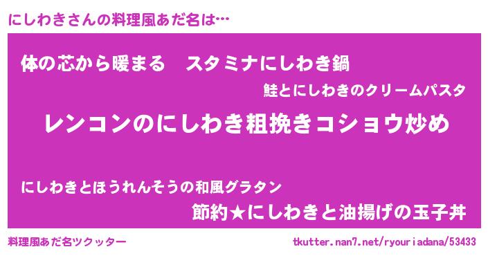 | 女子向けラノベタイトル風あだ名 | 『にしわきアンティーク』 |