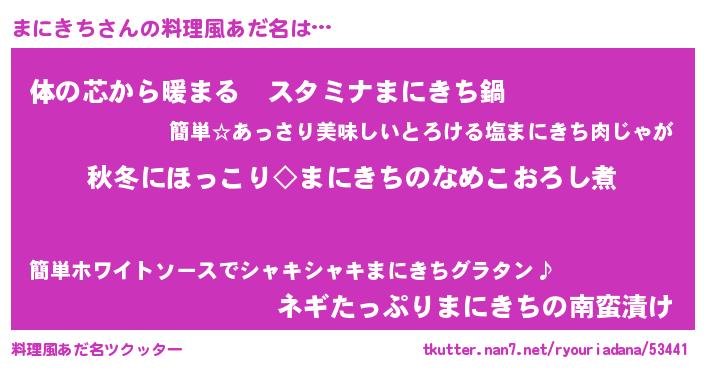| 男性向けラノベタイトル風あだ名 | 『まにきちに滅ぼされるだけの簡単なお仕事です』 |