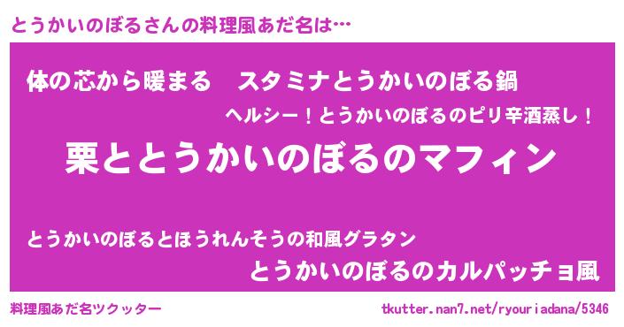 | 胡散臭い通販商品みたいなあだ名 | 『世界が平和になる高級そうな皿…その名も「とうかいのぼる」』 |