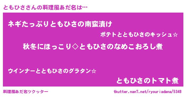 | ヒーロー風カッコイイあだ名 | 『スーパートモヒサ』『魔戒騎士トモ』 |
