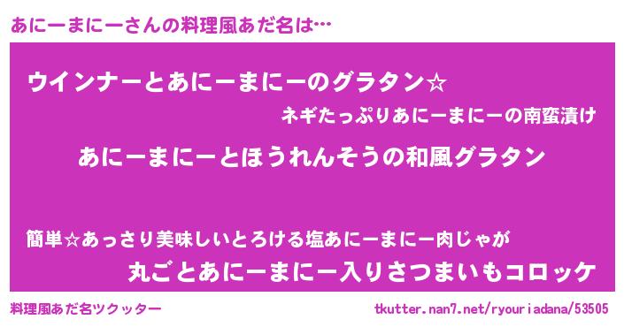 | ヘコむあだ名 | 『なまこ酢』『あにっふぃ~』 |