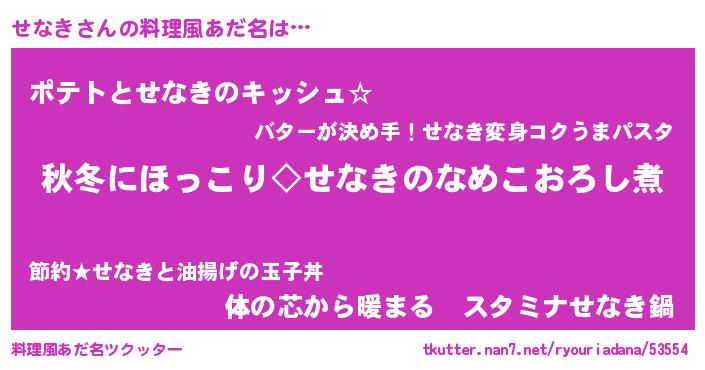 | 意味不明あだ名 | 『とにかく怪しいせなき』 |