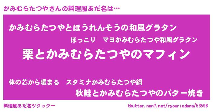 | 胡散臭い通販商品みたいなあだ名 | 『来世でも幸せになれる健康食品…その名も「かみむらたつや」』 |