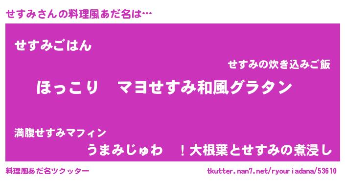 | 男性向けラノベタイトル風あだ名 | 『この素晴らしい世界にせすみを!』 |