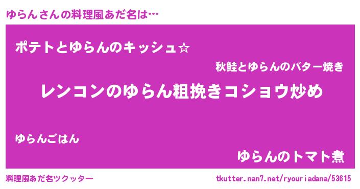 | 意味不明あだ名 | 『自称ゆらん』『とにかく怪しいゆらん』 |