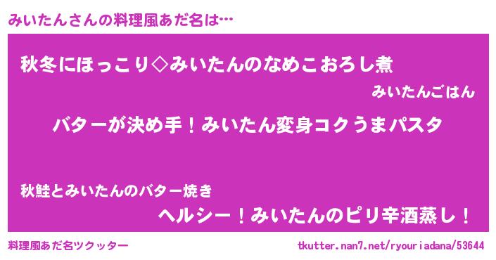 | 女子向けラノベタイトル風あだ名 | 『みいたん恋絵巻』『みいたんの契約王妃』 |