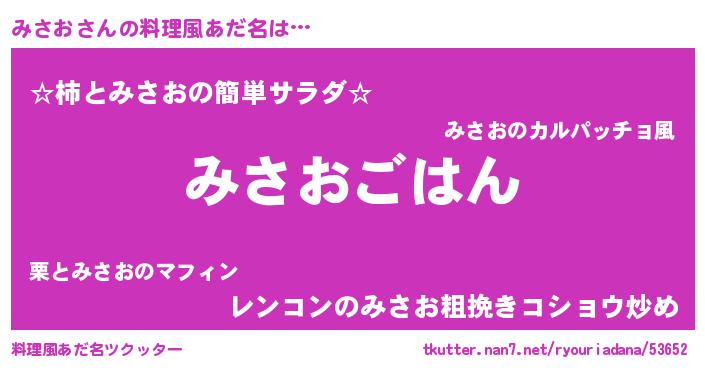 | 男性向けラノベタイトル風あだ名 | 『ミサオスレイヤー』『魔弾の王とみさお』 |