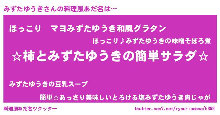 | 意味不明あだ名 | 『住所不定無職みずたゆうき(39歳)』 |
