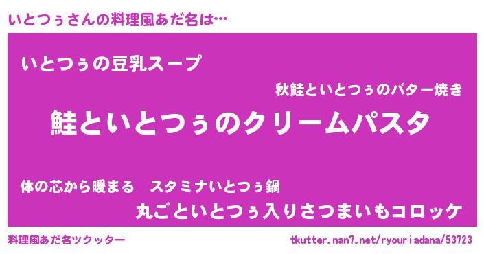 | 女子向けラノベタイトル風あだ名 | 『死神いとつぅの再婚』 |