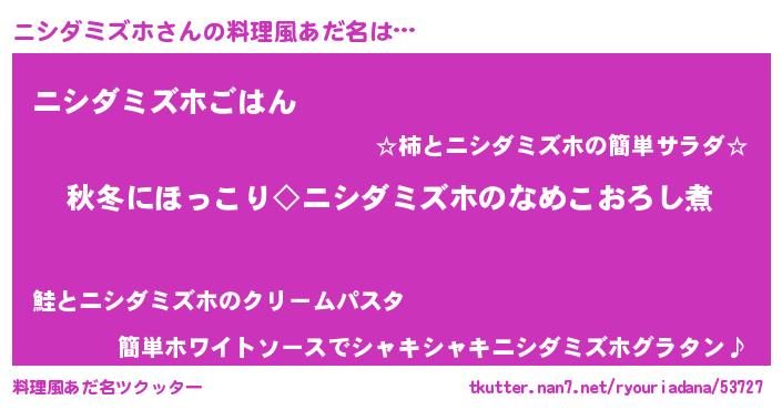 | 男性向けラノベタイトル風あだ名 | 『ニシダミズホに滅ぼされるだけの簡単なお仕事です』 |