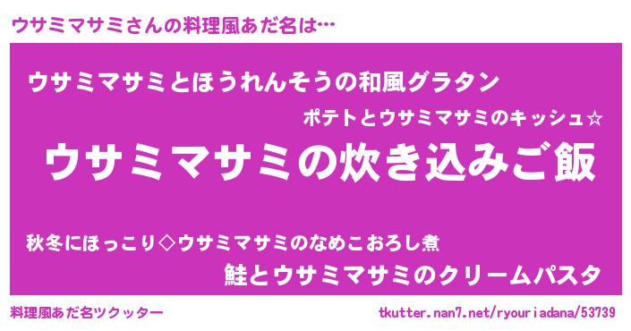 | 欧米人風あだ名 | 『ウサミマサミ・ステッグマイヤー』 |