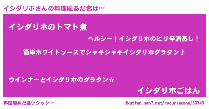 | ヘコむあだ名 | 『イシぷりん』『豆乳』 |