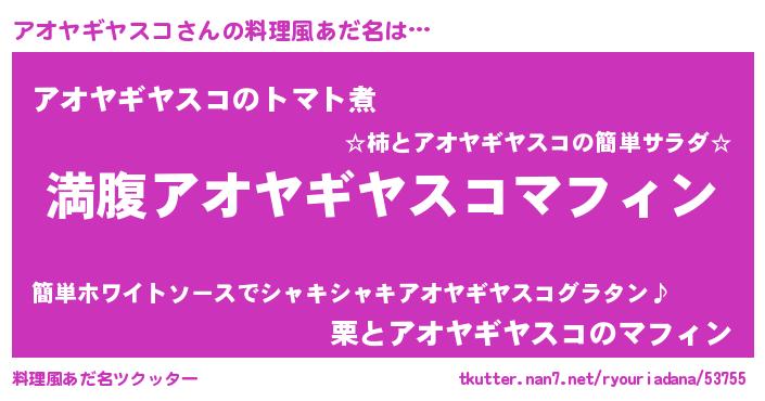 | ヘコむあだ名 | 『アオヤギヤスコ(震え声)』『アオぷりん』 |