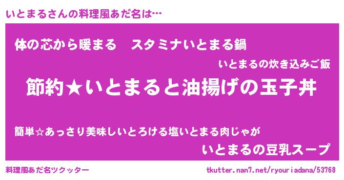 | 胡散臭い通販商品みたいなあだ名 | 『モテモテ間違いなしブレスレット…その名も「いとまる」』 |