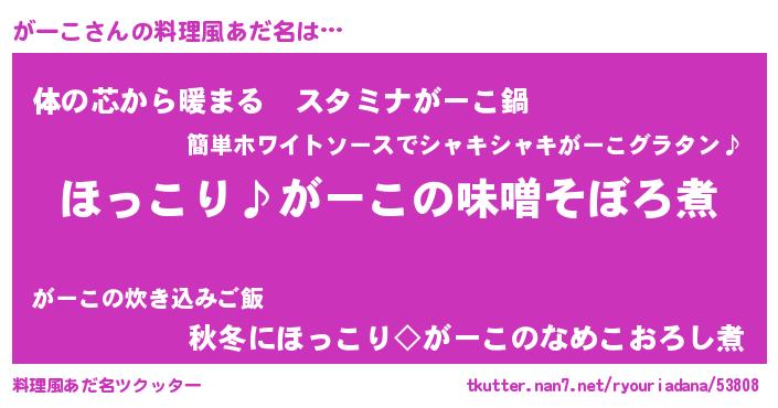 | 意味不明あだ名 | 『ペロリンがーこ』『がーこフォーエバー』 |