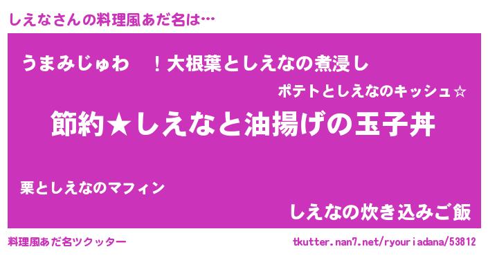 | ヘコむあだ名 | 『しえにゅー』『酢こんぶ』 |