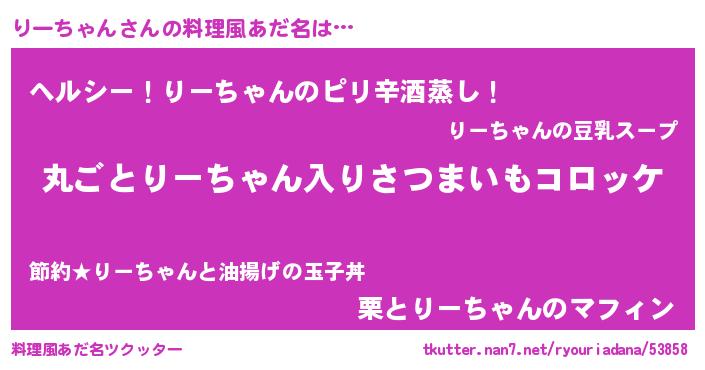 | 男性向けラノベタイトル風あだ名 | 『この素晴らしい世界にりーちゃんを!』 |