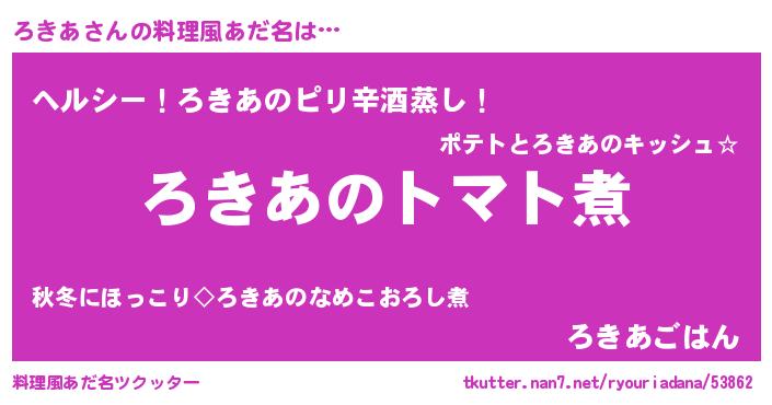 | ヘコむあだ名 | 『ろきっ子』『ろきにー』『なまこ酢』 |