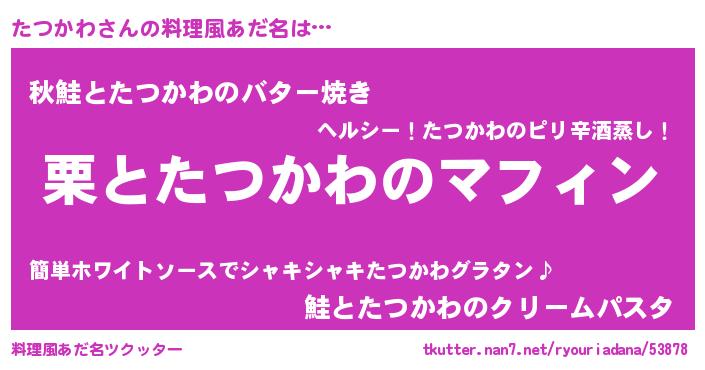 | 意味不明あだ名 | 『永久保存たつかわ』『自称たつかわ』 |