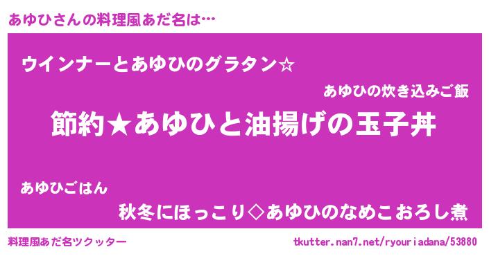 ポケモン風あだ名 | 『アユチュウ』『アユヒダネ』 |